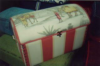Baúles tapizados con diferentes diseños de telas.